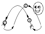 You may be assuming that you're going to learn to throw three balls in a circle. This is called the "shower" pattern and is actually a difficult way to juggle. Perhaps you can learn it later, but I will teach you the easiest, most basic way to juggle, called the "cascade" pattern. It is shown at the top of these instructions. To learn the cascade, you need to start with one ball... |